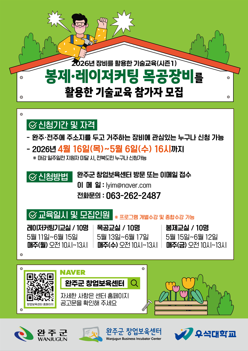 | 제 목 : | [공고] 2026년 완주군 창업보육센터 기술교육(시즌1) 참가자 모집 | ||